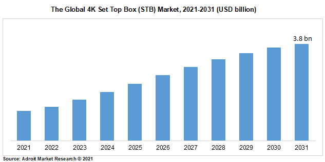 Market Value and CAGR of the 4K Set Top Box (STB) Market (2021-2032)