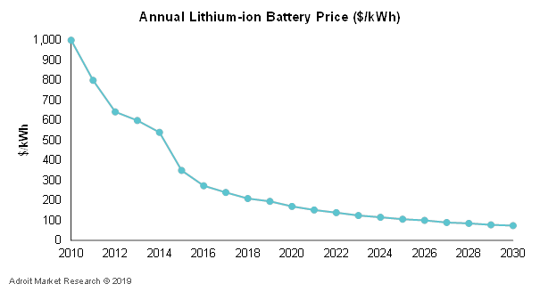 Both the cobalt and lithium market are driven by the demand for battery. Primarily from the consumer electronics segment and the electric vehicle segment. The global cobalt market sales are anticipated to reach USD 12.93 billion by 2025, growing at a CAGR of over 10%. Addition in the lithium and cobalt reserves coupled with technological advancement and economies of scale has led to drastic reduction in the price of the lithium-ion battery. It is estimated that the battery cost will fall to USD 74 per kilowatt-hour by 2030.