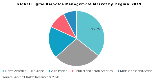 North America dominated the global digital diabetes management devices market in the year 2019 owing to the presence of a large patient pool suffering from diabetes. According, to the American Diabetes Association in the year 2018, 34.2 million Americans were having diabetes which equates to 10.5% of the total population. The percentage of Americans age 65 and older remains high, at 26.8%, or 14.3 million seniors (diagnosed and undiagnosed). Furthermore, annually there is an increase of 1.5 patients diagnosed with diabetes. Adroit Market Research further predicts that the favorable reimbursement scenarios over the forecast period will fuel market growth.