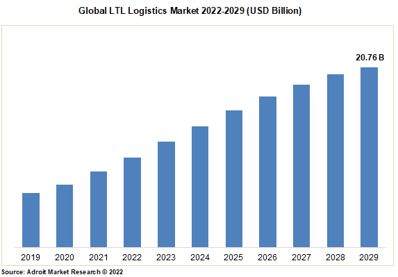 A compound annual growth rate of 4.3% is expected for the period of 2022-2029, which will result in the worldwide LTL logistics market reaching a total valuation of 20.76 billion USD.