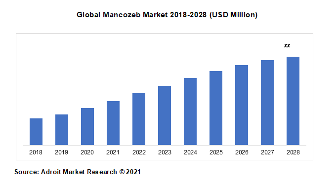 The mancozeb market is driven by an increase in worldwide food demand as well as low costs and efficient outputs. Mancozeb's expansion is hampered by regulations governing its use and distribution, as well as eco-friendly fungicide replacements. Surging demand from emerging nations, on the other hand, gives enormous prospects for the mancozeb market to grow in the future years.